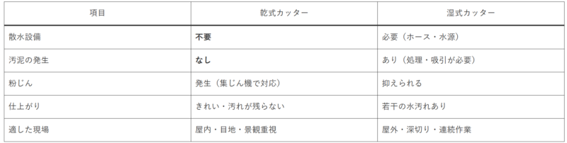■湿式カッターと乾式カッターの違い