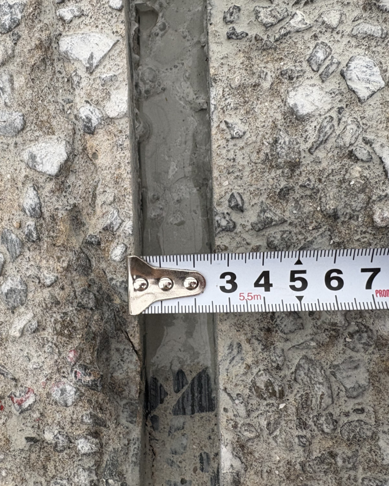 施工の際は、事前に切断位置を確認し、舗装厚に合わせて切断深さを調整しながら作業を進めます。直線性を保ちながら丁寧に切断することで、撤去作業の効率化だけでなく、復旧後の舗装との取り合いもきれいに仕上げることができます。また、周囲の構造物や既設設備に影響を与えないよう、安全面にも配慮しながら施工を行います。